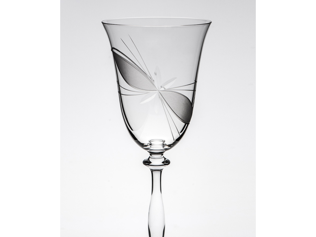 Ručně broušené sklenice na víno Angela jsou vyrobeny z tradičního českého křišťálu. Skleničky jsou dekorovány lehkým brusem Mašle.