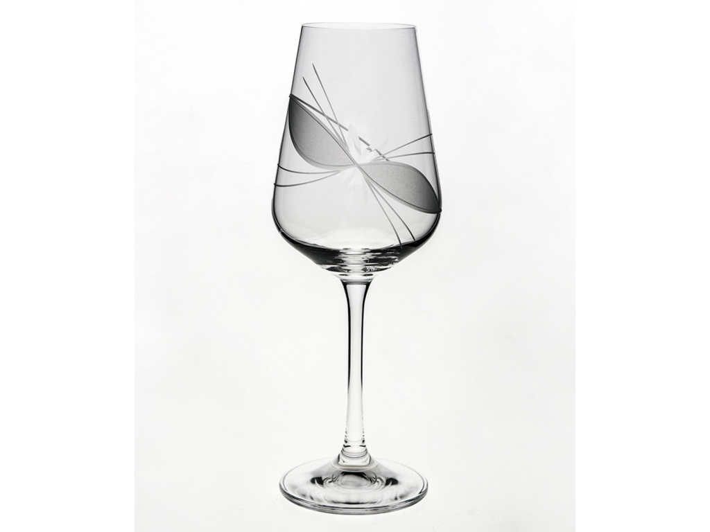 Jde o ručně broušené sklenice na víno z tradičního českého křišťálu. Skleničky jsou dekorovány lehkým brusem Mašle, u kterého se střídá matný a lesklý vzor.